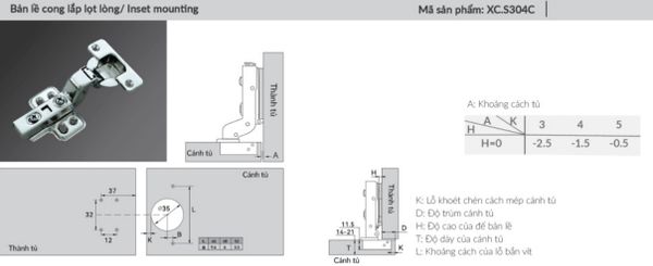 - Bản lề giảm chấn, tháo lắp nhanh Chất liệu sản phẩm SUS304