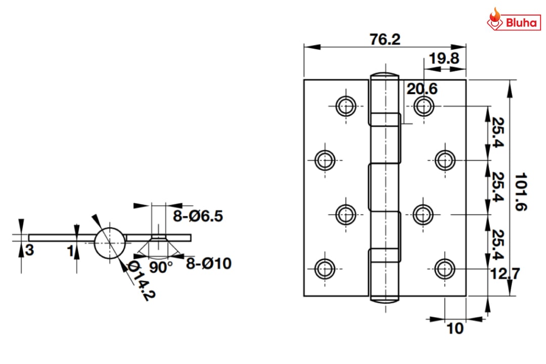 Bản lề lá 102x76x3mm 2 vòng bi Hafele 926.35.703