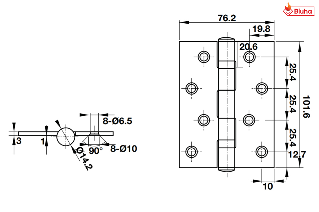 Bản lề lá 2 vòng bi Hafele màu đen