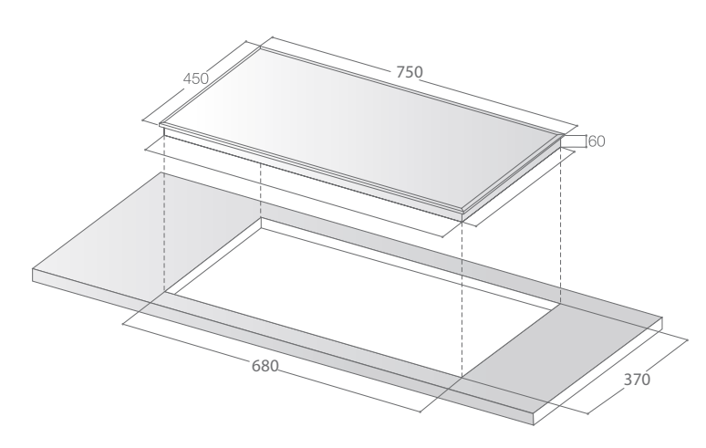 - Kích thước khoét đá: 690x380mm