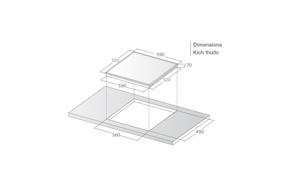 - Kích thước khoét đá: 560 x 490mm