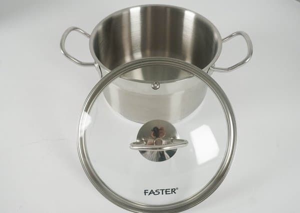 – Lớp ngoài cùng là inox 430, cũng là lớp trực tiếp tiếp xúc với mặt bếp. Inox 430 có đặc điểm là bắt từ chính vì vậy mẫu nồi chảo FASTER có đáy ngoài cùng inox 430 giúp bắt từ nấu nướng hiệu quả.
