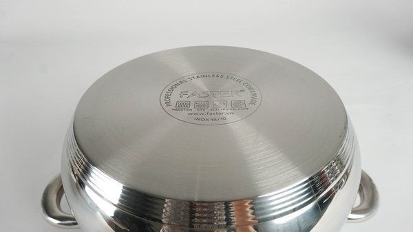 Bộ nồi Faster Daily sản xuất từ chất liệu inox cao cấp 304, nấu được trên mọi loại bếp như bếp từ, bếp hồng ngoại, bếp Gas…Inox 304 dày dặn, sáng bóng, không bị gỉ sét hay ăn mòn, vì vậy an toàn tuyệt đối cho sức khỏe người sử dụng. Đặc biệt, inox 304 không bị oxy hoá, chịu được nhiệt độ cao, khả năng chống trầy xước và móp méo do va đập, vì vậy bộ nồi gia đình bạn sẽ luôn sáng bóng như mới.