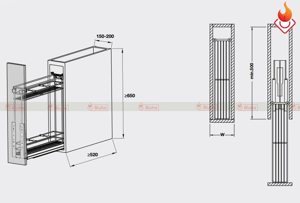 Phụ kiện bộ rổ kéo để gia vị Hafele 549.34.022 - 549.34.021 lắp đặt tủ bếp dưới
