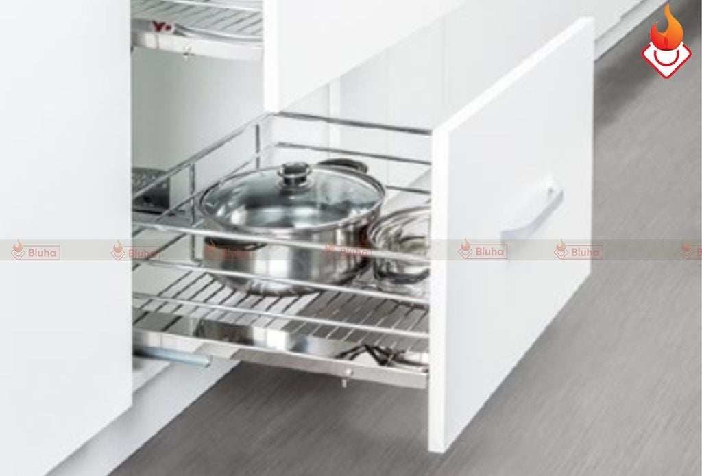 Phụ kiện rổ kéo để xoong nồi Hafele nan tròn gắn cánh tủ được lắp dặt ở tủ bếp dưới, xoong nồi, chảo, đồ khô.