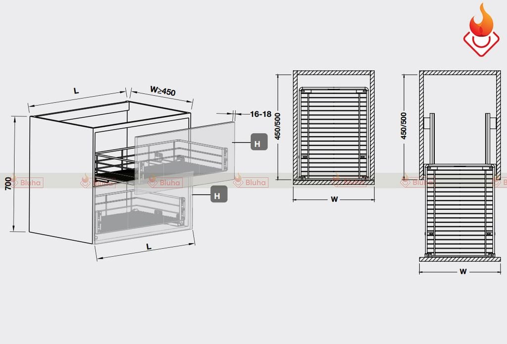 - Giá kéo tự động hạ xuống khi cửa tủ mở ra