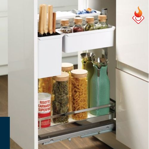 - Phụ kiện tủ dưới mở rộng toàn phần - dễ dàng kéo toàn bộ đồ vật được đựng trong tủ ra bên ngoài