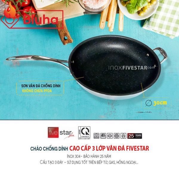 Chảo Fivestar cao cấp 3 lớp inox 304 30cm - Chảo cao cấp được ưa chuộng năm 2020