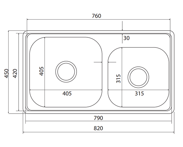 - Có 2 lỗ vòi (vòi rửa bát, vòi lọc hoặc bình đựng nước rửa gắn chậu) chờ lắp đặt