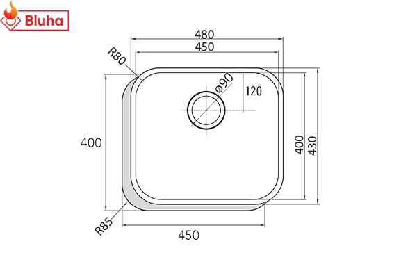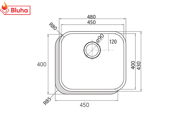 Kích thước lắp đặt Chậu rửa bát Cata CB 40-40 Inox