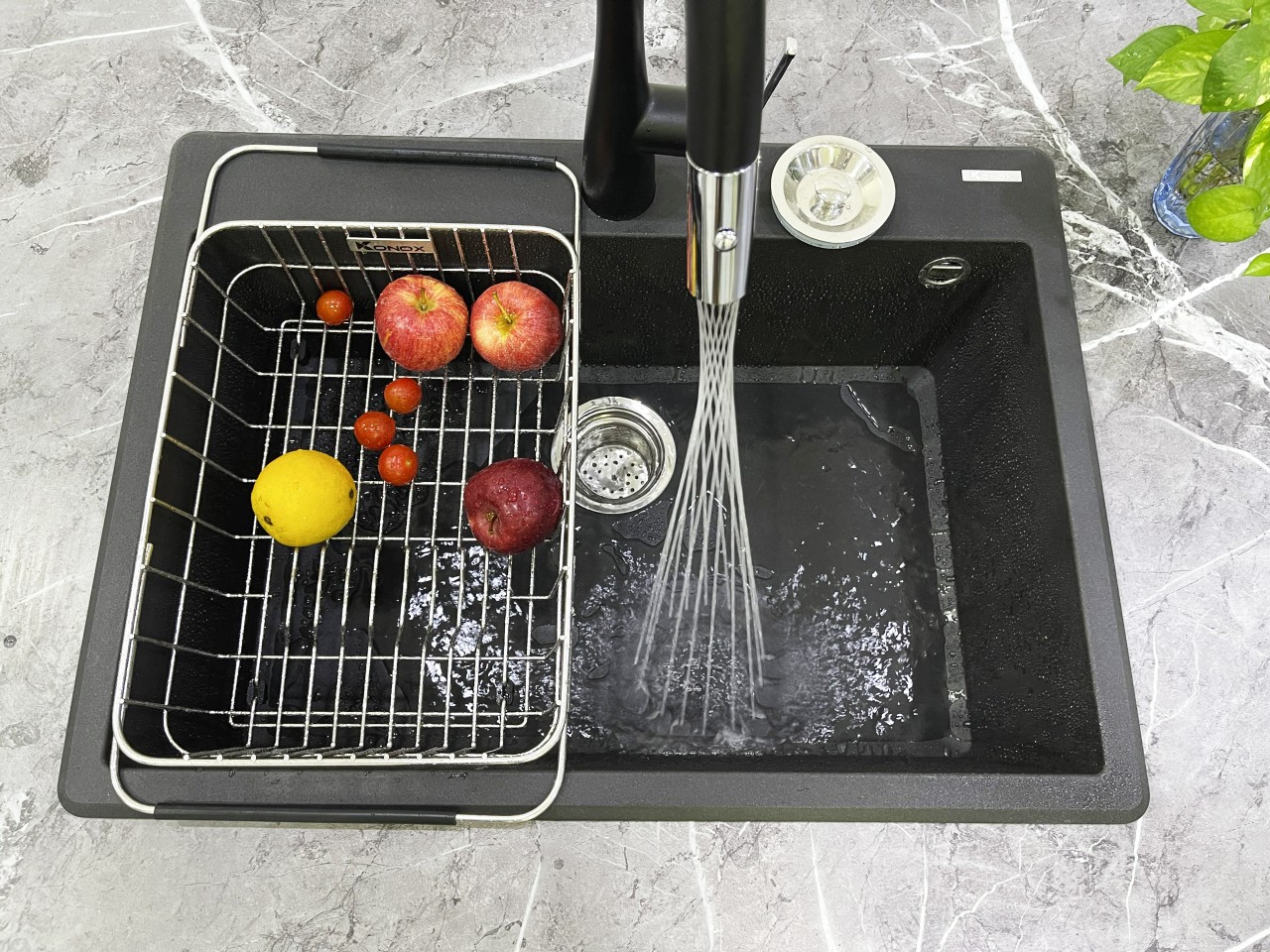 Chậu rửa bát đá Konox Ruvita 680 Grey/Black/Silver