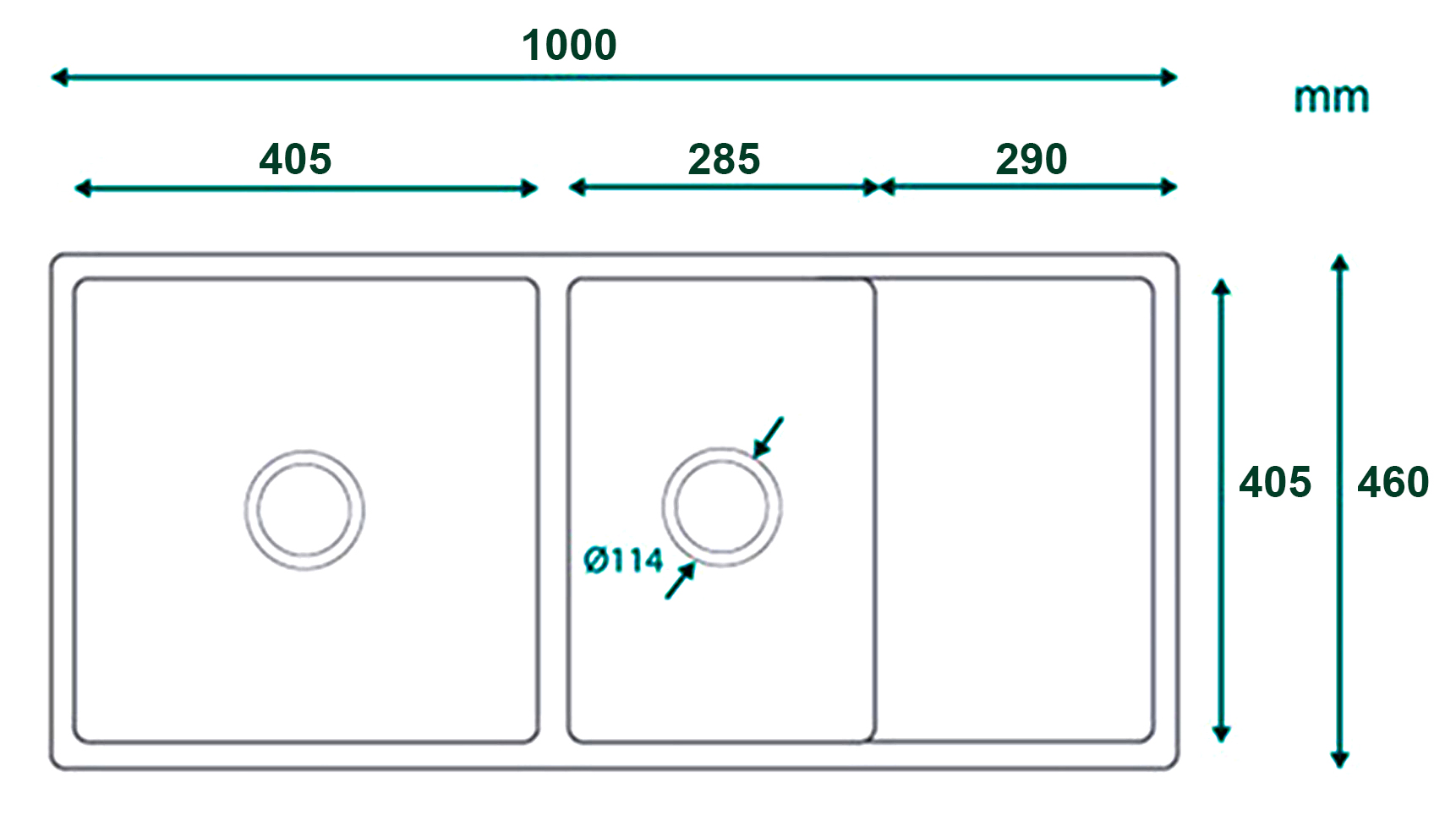 - Kích thước chậu: R1000 x S460 x C230 mm