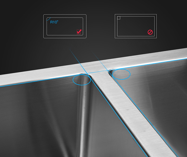 Lòng chậu sâu giúp bạn để được nhiều vật dụng nhà bếp hay rửa rau củ một cách thoải mái, dễ dàng. Ngoài ra mặt đáy vát hình chữ X giúp bạn thoát nước nhanh, tránh ngưng tụ nước, rất tiện lợi khi sử dụng.