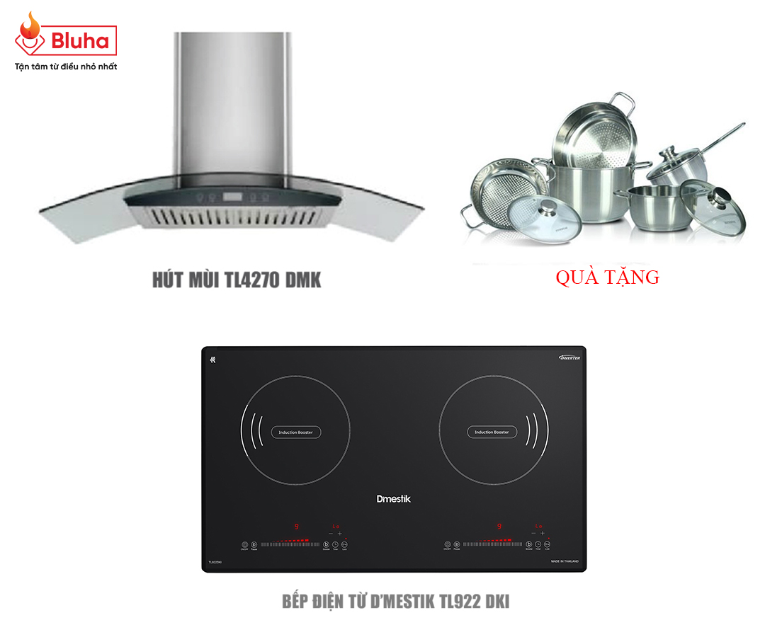 Bluha mang đến một giải pháp tiết kiệm chi phí làm bếp cho gia đình Việt với Combo bếp hút Dmestik 1 gồm 01 bếp từ TL922 DKI và 01 hút mùi TL4270 DMK. Ngoài ra còn được tặng thêm bộ nồi Five Star 5 món trị giá 923.000Đ còn cần chừ gì nữa mà không mua ngay.