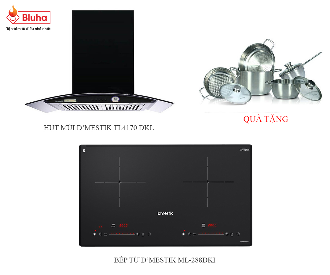 Bluha mang đến một giải pháp tiết kiệm chi phí làm bếp cho gia đình Việt với Combo bếp hút Dmestik 2 gồm 01 bếp từ ML288 DKI và 01 hút mùi TL4170 DMK . Ngoài ra còn được tặng thêm bộ nồi Five Star 5 món trị giá 923.000Đ còn cần chừ gì nữa mà không mua ngay.