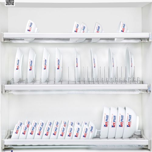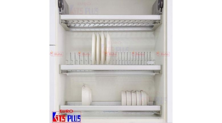 Phụ kiện được làm từ inox 304 và có nhiều mẫu mã cùng kích thước khác nhau với giá tiền không quá cao. Giá để bát Eurokits Plus được sản xuất theo tiêu chuẩn công nghệ nước ngoài nên không dùng để đũa. Vì vậy, chúng ta nên lắp thêm kệ đựng gia vị dao thớt phía dưới tủ bếp. Với kiểu dáng hiện đại cùng khay hứng nước được bố trí với phù hợp giúp không bị thấm nước làm ảnh hưởng đến phần gỗ nhà bạn. Giá để bát 3 tầng có khay Inox 304 gồm 1 tầng úp bát và 1 tầng úp đĩa, 1 tầng để bát ô tô to hoặc đồ đựng khác, có khay hứng nước inox.