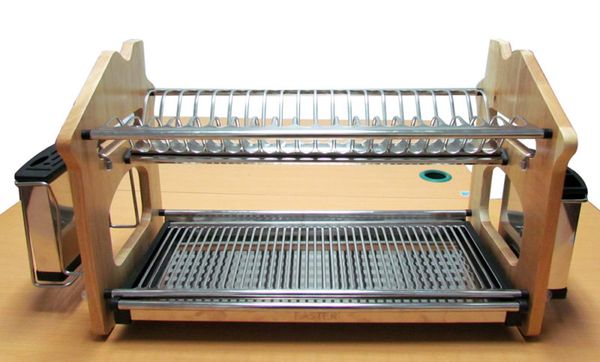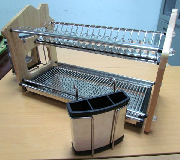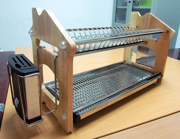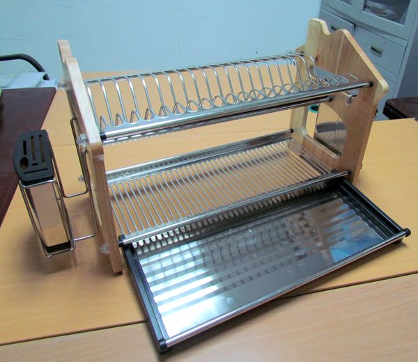 Giá bát đĩa để bàn sang trọng với inox 304, hai bên trụ bằng gỗ