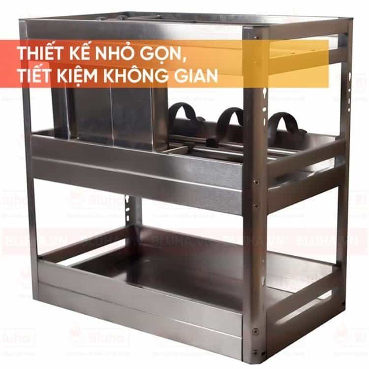 Được thiết kế nhỏ gọn với số lượng ngăn vừa đủ cho các vật dụng nhà bếp, Giá chai lọ giao thớt Euro Inox hộp - cánh kéo, ray trượt giảm chấn giúp tiết kiệm tối đa không gian bếp nhà bạn. Khi sở hữu sản phẩm này, căn bếp nhà bạn sẽ trở nên gọn gàng và sạch đẹp hơn rất nhiều.