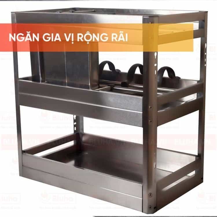 Giá chai lọ dao thớt Euro Inox hộp - cánh kéo, ray trượt giảm chấn là phụ kiện bếp không thể thiếu, giúp bạn giải quyết những bất tiện khi nấu nướng trong chính căn bếp nhà mình.
