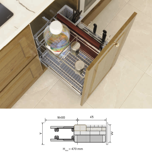Ngăn dưới cùng, bạn có thể tận dụng để các hộp gia vị khác nhau, có chiều cao vừa phải. Khay hứng nước bằng nhựa cao cấp, ít bám bẩn, vệ sinh dễ dàng.