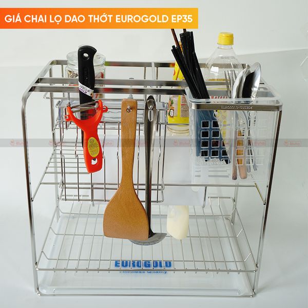 Giá chai lọ dao thớt đa năng Eurogold nan dẹt inox 304 cao cấp ray giảm chấn