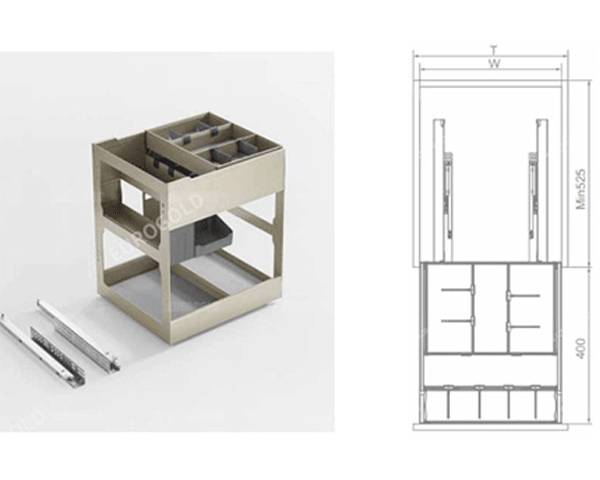 - Chiều rộng tủ: 300mm-350mm-400mm