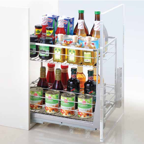 Thiết kế khá nhỏ gọn, giúp bạn tận dụng được tối không gian lưu trữ hệ tủ bếp dưới. Giá gia vị Eurogold được thiết kế bao gồm giá và hệ thống ray trượt giảm chấn. Việc sử dụng giá ( kéo ra/ đẩy vào) trở nên êm ái mà vô cùng nhẹ nhàng.