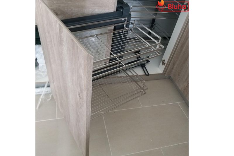 Góc tủ bếp luôn được xem là góc chết trong căn bếp và cũng là nơi tích trữ rất nhiều bụi bẩn vì không thể sử dụng được. Nhưng nay với giá góc liên hoàn thì mọi vấn đề đều có thể giải quyết.