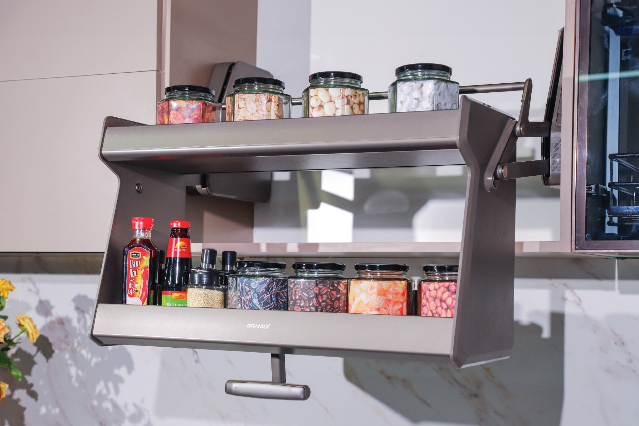 Phụ kiện tủ bếp GRANDX là dòng sản phẩm với sự tối ưu về công năng sử dụng, lựa chọn các vật liệu cao cấp, mang đến tính hiện đại, tiện lợi cho khách hàng.