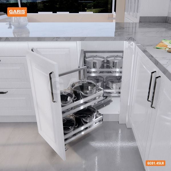 Hệ góc sole Garis GC01.45L/R cánh kéo phải được xem như giải pháp tuyệt vời cho góc chết, giúp bạn tăng diện tích sử dụng để chứa đồ cho không gian bếp đặc biệt phù hợp cho những không gian bếp nhỏ.