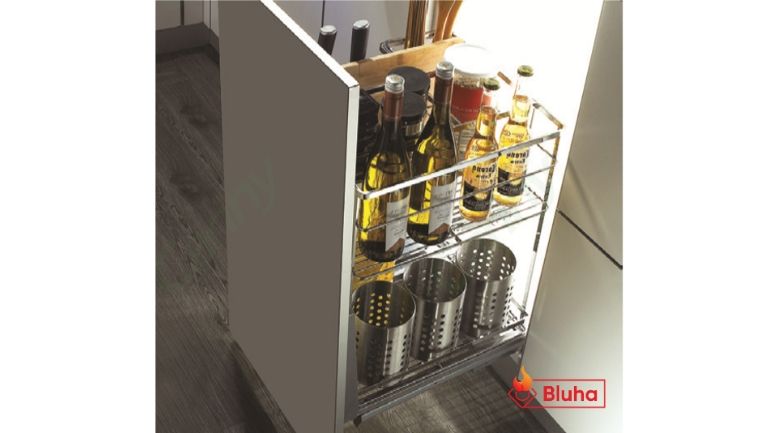Kệ dao thớt, gia vị Cariny CH-1945 inox sợi 304 đa năng, ray âm giảm chấn