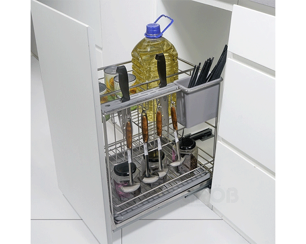 Kệ đựng dao thớt Grob CS304 nan tròn inox 304 được làm từ chất liệu inox SUS304 có độ bền cao và chống gỉ tốt. Với thiết kế dạng nan đan tròn 3 tầng giúp lau chùi vệ sinh dễ dàng, sử dụng bộ ray âm giảm chấn cao cấp êm ái khi kéo ra đẩy vào.