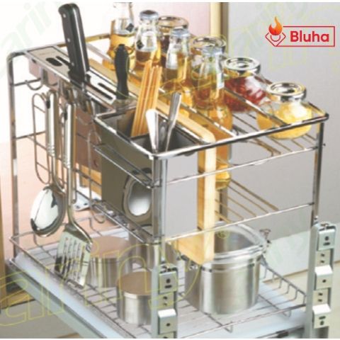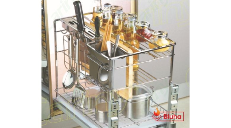 Kệ gia vị, chai lọ dao thớt Cariny inox sợi 304 điện hóa đa năng, ray âm giảm chấn