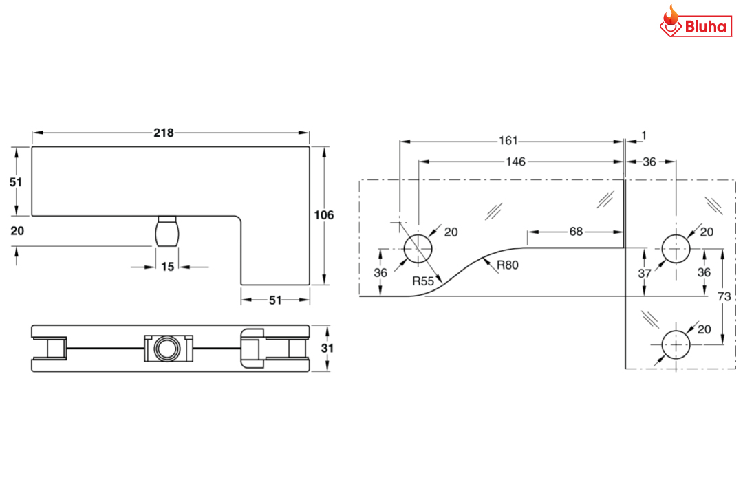 Kẹp kính chữ L Hafele màu đen