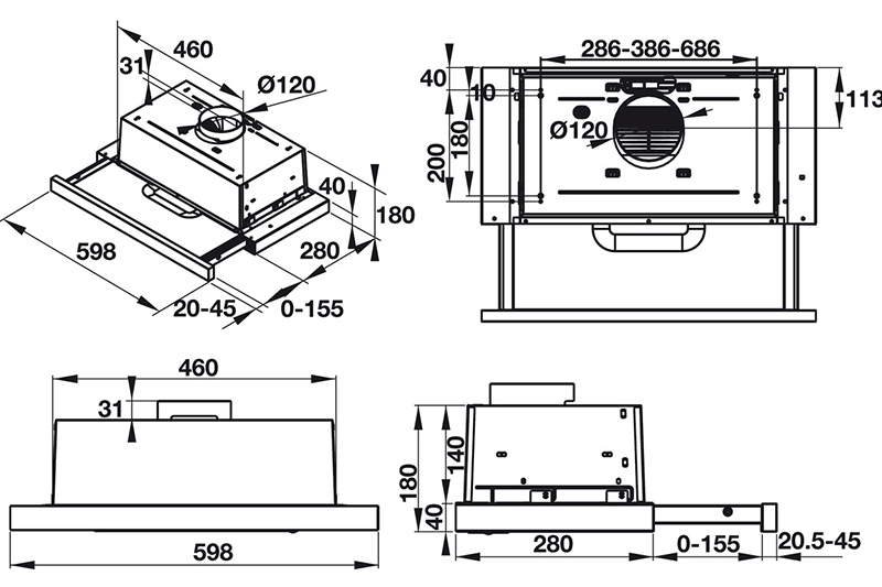 Máy hút mùi âm tủ Hafele dạng kéo 60cm HH-T160D 539.81.083