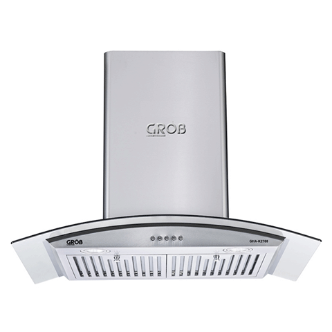 Máy hút mùi Grob GHA kính cong sử dụng bảng điều khiển phím bấm điện tử 3 tốc độ hút phù hợp với lượng mùi và khói khi nấu ăn để đảm bảo sạch mùi cho không gian bếp nhà bạn. Hệ thống đèn chiếu sáng của máy gồm 2 đèn Led có tác dụng chiếu sáng và làm cho công việc nấu ăn thêm thuận lợi. Lưới lọc mỡ bằng hợp kim gồm nhiều lớp để ngăn chặn triệt để mùi,bụi lọt vào bên trong máy gây hỏng động cơ. Tấm lưới này có thể tháo rời để vệ sinh một cách dễ dàng