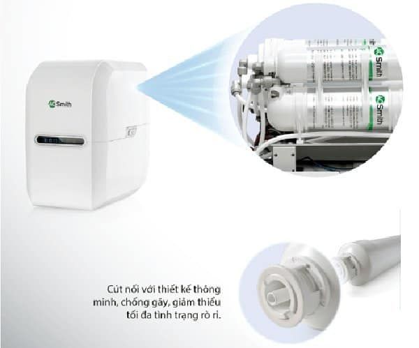 Cút nối nhanh thế hệ mới, chống gãy, giảm thiểu tối đa tình trạng rò rỉ trong khi vận hành. Màn hình LED: hiển thị đầy đủ thông tin, giúp kiểm soát máy dễ dàng. Toàn bộ chi tiết cấu thành nên sản phẩm máy lọc nước A.O. Smith được NSF International kiểm tra và chứng nhận đạt chuẩn NSF/ANSI 58 và 42.