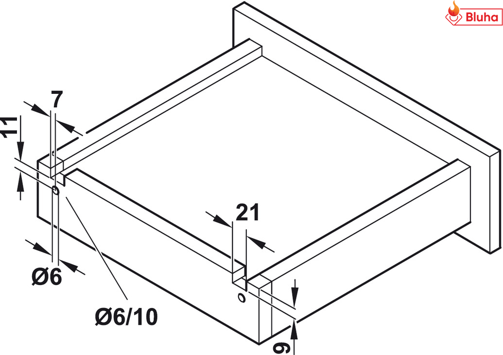 Chiều rộng tối đa ngăn kéo tối đa = (chiều rộng lọt lòng hộc tủ - 10mm)