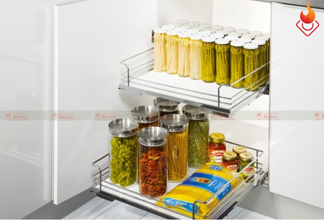 - Phụ kiện tủ dưới mở rộng toàn phần - dễ dàng kéo toàn bộ đồ vật được đựng trong tủ ra bên ngoài
