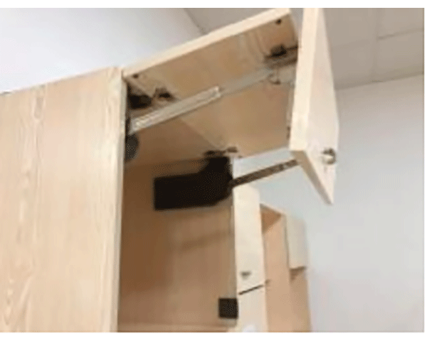 + Tay nâng đôi Grob chính hãng giúp nâng cánh tủ theo phương thẳng đứng chỉ với 1 lực tác động nhẹ; bên cạnh đó hệ thống giảm chấn tích hợp trong hộp kĩ thuật 2 bên giúp cánh tủ chuyển động nhẹ nhàng, không gây ra tiếng ồn.