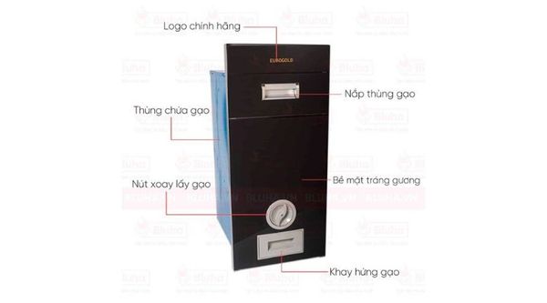 Thùng gạo EUROGOLD C260/C300 mặt gương Trắng/Đen
