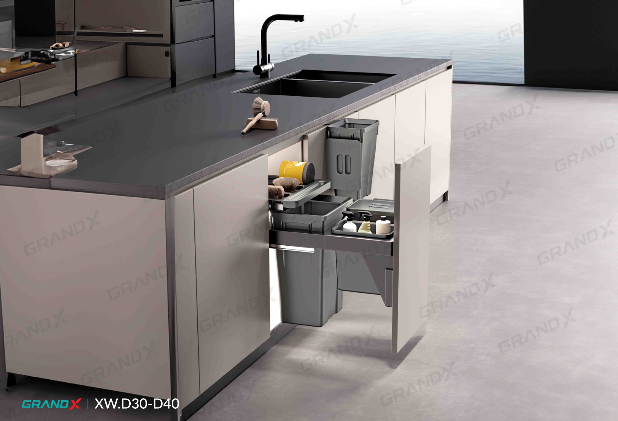 Thùng rác đôi cánh kéo âm tủ Grandx Waste Bin XW.D30