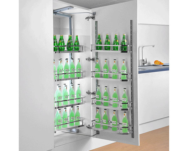 Thay vì xếp đồ đạc một cách không khoa học tạo nên sự bề bộn cho bếp thì tủ kho sẽ đem tới cho bạn sức chứa vô cùng lớn giúp căn bếp luôn sạch sẽ, gọn gàng. Với thiết kế 4 tầng, 8 rổ đựng. bạn có thể tha hồ cất gọn tất cả các vật dùng, đồ ăn vào khoang tủ phía sau cánh cửa tủ.