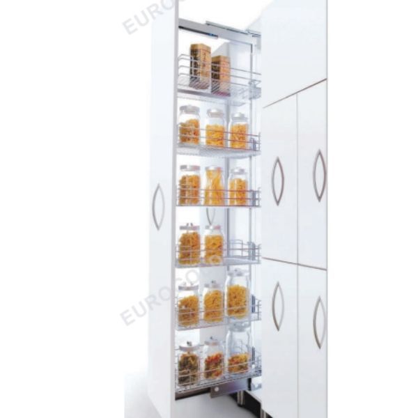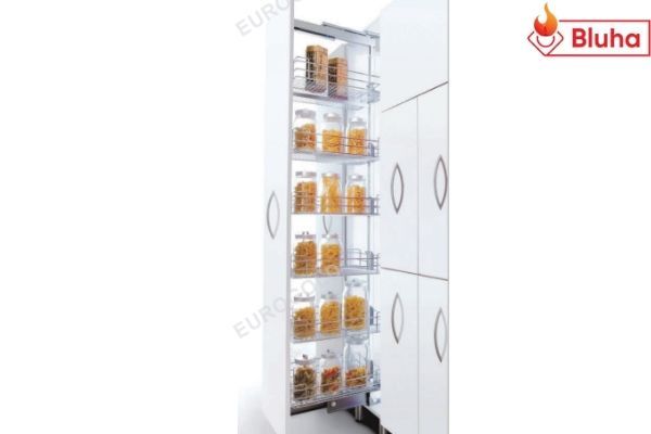 Thay vì xếp đồ đạc một cách không khoa học tạo nên sự bề bộn cho bếp thì tủ kho sẽ đem tới cho bạn sức chứa vô cùng lớn giúp căn bếp luôn sạch sẽ, gọn gàng. Với thiết kế 6 tầng, 6 rổ đựng. bạn có thể tha hồ cất gọn tất cả các vật dùng, đồ ăn.. vào khoang tủ phía sau cánh cửa tủ.