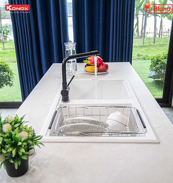 Toàn bộ linh phụ kiện trợ dẫn dòng nước sử dụng trong vòi rửa bát KONOX đều đạt tiêu chuẩn cao nhất về chất lượng và vệ sinh an toàn nguồn nước theo tiêu chuẩn Châu Âu